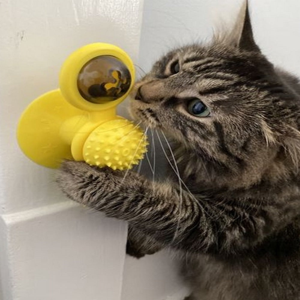 Multiuso: No meio do brinquedo, há uma parte que pode servir como se fosse uma escova, desta forma seu pet pode se esfregar e se coçar no brinquedo, além de comer petiscos!
